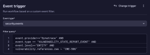CWE-506 refers to the Common Weakness Enumeration ID 506: Embedded Malicious Code. Also, we filter in our trigger on new findings so people don’t get notified over and over again on already acknowledged events.